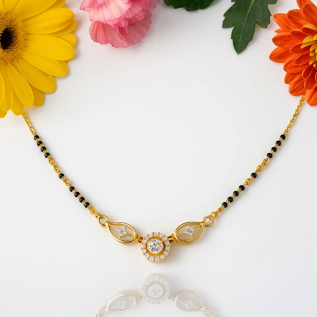 Why You’ll Love It: Minimal yet impactful, this mangalsutra is ideal for women who love understated elegance. Its round pendant with shimmering stones radiates charm, offering a refined look. Perfect for pairing with Indian or Western wear, this piece ensures that you carry tradition with grace every day.