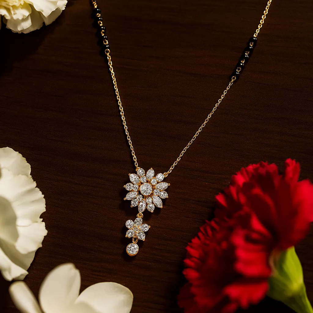 Daisy bloom inspired diamond mangalsutra with drop detailing