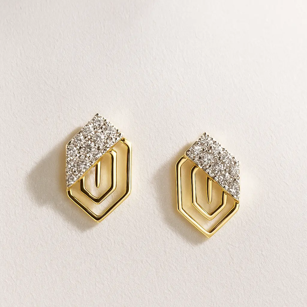 Why You’ll Love It: These studs are perfect for women who want modern designs that make a statement. The geometric structure reflects strength and elegance while American diamonds ensure sparkle. They seamlessly pair with both casual and party outfits offering a versatile accessory that is stylish and long lasting.