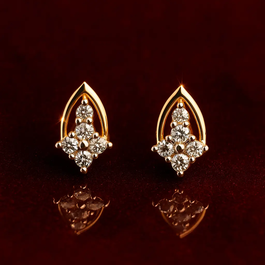 Marquise inspired stud earrings made with silver alloy and adorned with dazzling American diamonds, crafted to radiate a luxurious glow. The sleek leaf-like design is refined and elegant, making them an excellent choice for both formal and festive occasions. These earrings showcase detailed craftsmanship that highlights the beauty of symmetry and brilliance.