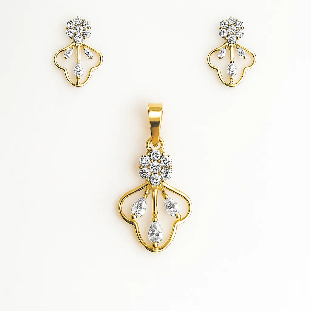 Graceful silver lotus leaf pendant earrings set crafted with radiant American diamonds. Its lotus leaf-inspired motif symbolizes purity and serenity.