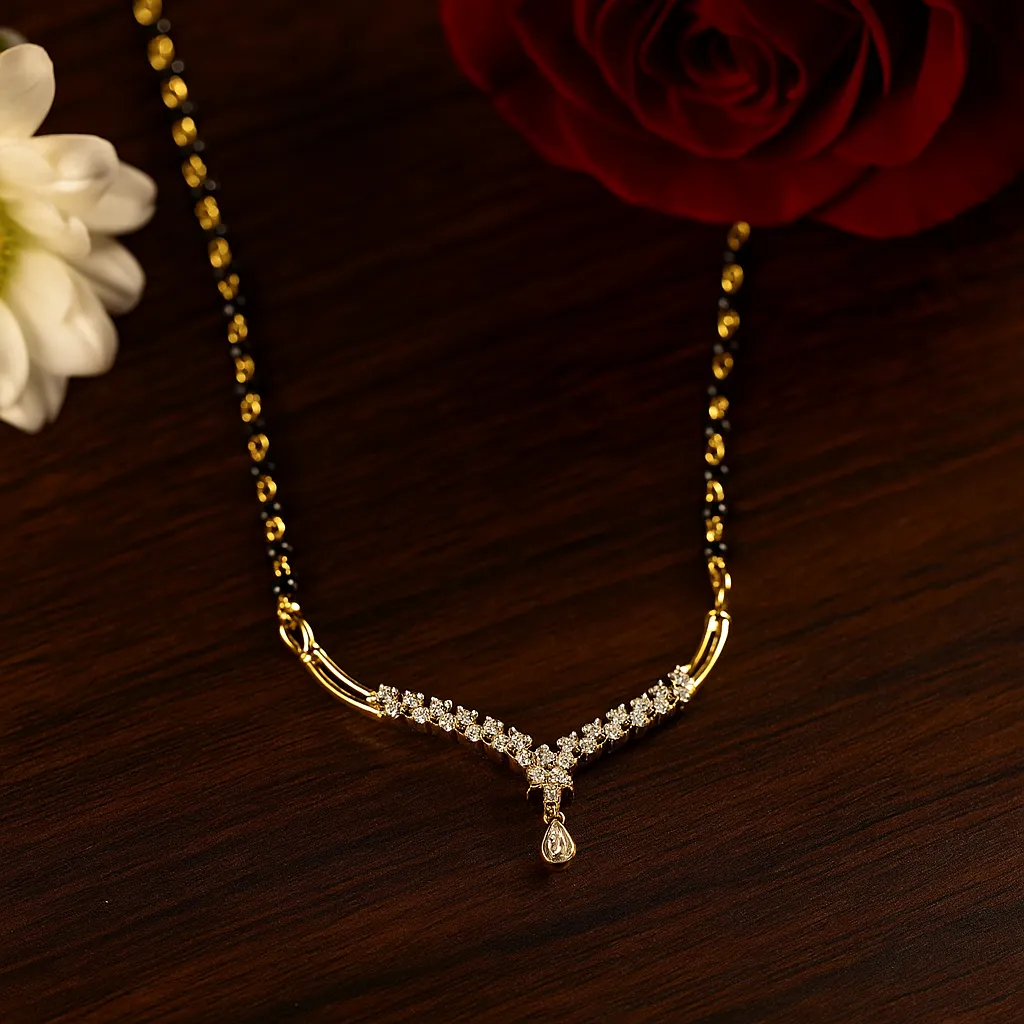 Graceful v curve diamond mangalsutra with dangling stone