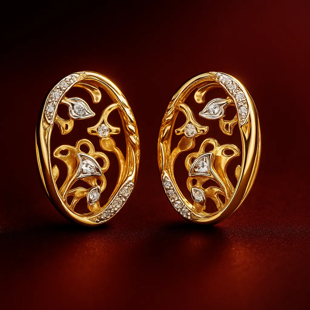 Be the first to review “Oval filigree gold stud earrings with diamond accents”