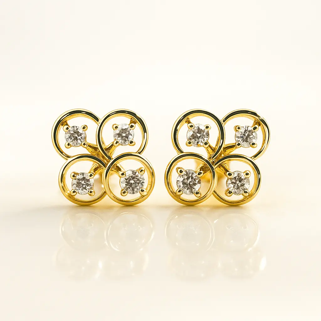 + Free ShippingQuadruple circle frame silver stud earrings made with silver alloy gold polish and American diamonds creating a bold yet elegant look versatile enough for work parties or traditional gatherings lightweight and stylish with modern appeal